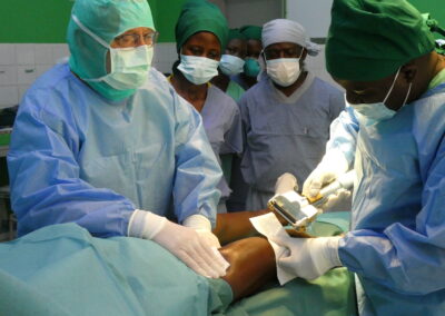 So reisten wir nicht in unbekanntes Neuland, die Wege sind gebahnt und damit auch unser Tun vor Ort. Vieles läuft längst routiniert, bei einigem ist weiterhin Verbesserungsbedarf geboten. Große Hilfe war Dr. Simba, Chirurg, der am zweiten Tag zu uns stieß. Simba hat mehrmals mit uns zusammengearbeitet, kennt unser operatives Spektrum und konnte so die in großer Zahl angereisten Patientenströme kanalisieren, damit wir uns auf die wirklich großen Fälle konzentrieren konnten: Kontrakturen nach Verbrennungen, chronische Knocheneiterungen, frische offene Wunden mit großen Hautdefekten.