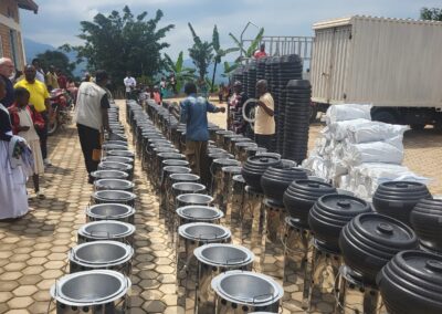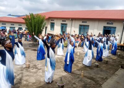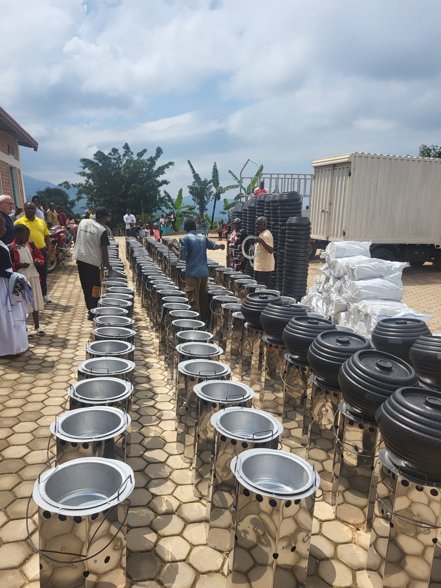 Klimaschutz und Verbrennungsschutz: schon im Frühjahr waren die ersten Kochöfen (cookstoves) der Bevölkerung Murundas zur Verfügung gestellt worden. An der Übergabe weiterer 300 Öfen nahmen wir am Samstagvormittag teil: die Handhabung der Öfen wurde von einem Vertreter der ruandischen NGO Safer Rwanda, die die Öfen herstellen, vorgestellt. Schülerinnen der benachbarten Secondary School führten in landestypischer Tracht traditionelle Tänze auf. Für alle Anwesenden, insbesondere für unser Team, eine bewegende Zeremonie der Dankbarkeit. 80% an Brennmaterial sparen diese Öfen ein, verhindern offenes Feuer und somit schwere Verbrennungen. Schon liegt die Anfrage für weiter Öfen vor. Nebst allem Zubehör, u.a. Töpfe, kostet ein Ofen unter € 30,-