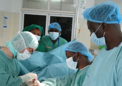 Jean Pierre, der Ärztliche Direktor des Krankenhauses, bewies eine glückliche Hand in der Auswahl des Personals, mit dem wir die nächsten zwei Wochen zusammenarbeiteten. Landouard, OP-Pfleger, hatte schon in unserer Anfangszeit, 2009, mit uns gearbeitet, Dr. Remy, ein junger Arzt, lernte schnell und eifrig. Unserem Anästhesieteam standen Dennis und Asmis zur Seite, zusammen mit Francoise, der ruandischen Anästhesie-Schwester, die seit 7 Jahren bei jedem Einsatz dabei ist, waren auch sie ein starkes Team, sodass Hans-Jürgen genügend Zeit blieb für Wartungen seiner Geräte.